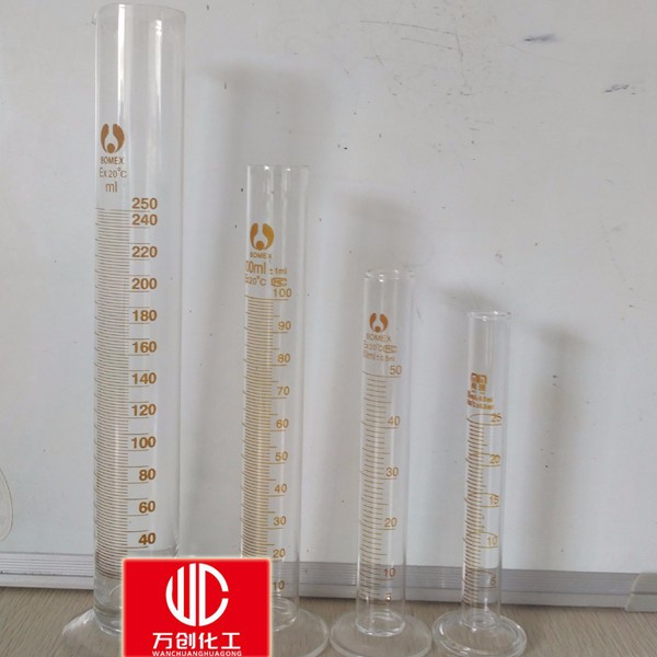 量筒量筒是用來量取液體的一種玻璃儀器。量筒越大,管徑越粗,其精確度越小,由視線的偏差所造成的讀數誤差也越大。所以,實驗中應根據所取溶液的體積,盡量選用能一次量取的最小規格的量筒。常用規格:5ml、10ml、25ml、50ml、100ml、250ml、500ml、1000ml 注意事項:1.不能作反應容器2.不能加熱、量取熱溶液3.不能稀釋濃酸、濃堿4.不能儲存藥劑
